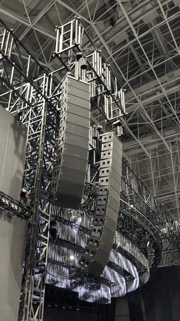 This meticulous stage line array speaker configuration was designed to provide even, high-fidelity sound across the entire gymnasium area, allowing every attendee to fully immerse themselves in the artist’s performance . The system successfully ensured that the vocals and music were delivered with clarity and impact, contributing significantly to the concert’s engaging atmosphere. The setup exemplifies how modern line array systems are ideal for stage applications, offering precise control over vertical sound dispersion to consistently cover both front and rear audience areas .